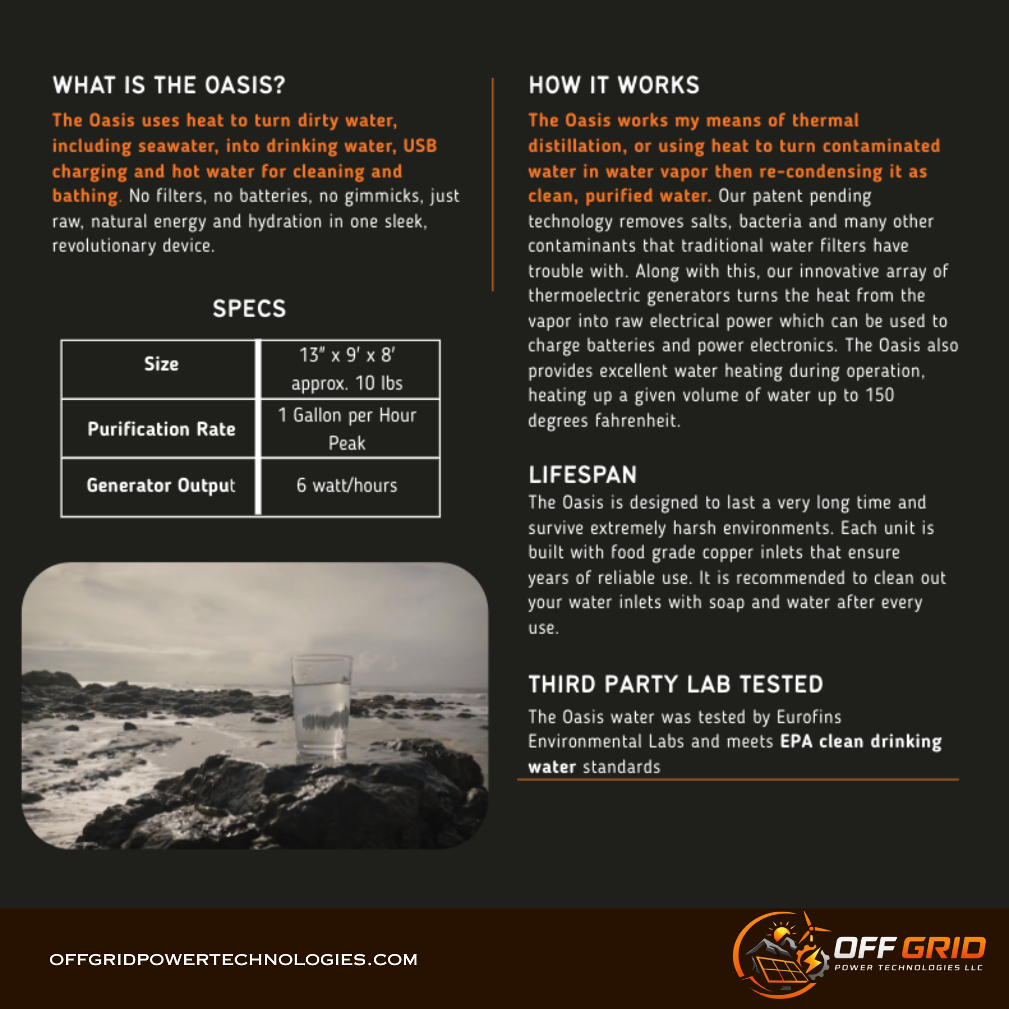 We are an American company based out of Dallas, TX who believe that everyone deserves the right to resource security, no matter the situation. We strive to create the most innovative and reliable off-grid gear so vital resources can always be accessed